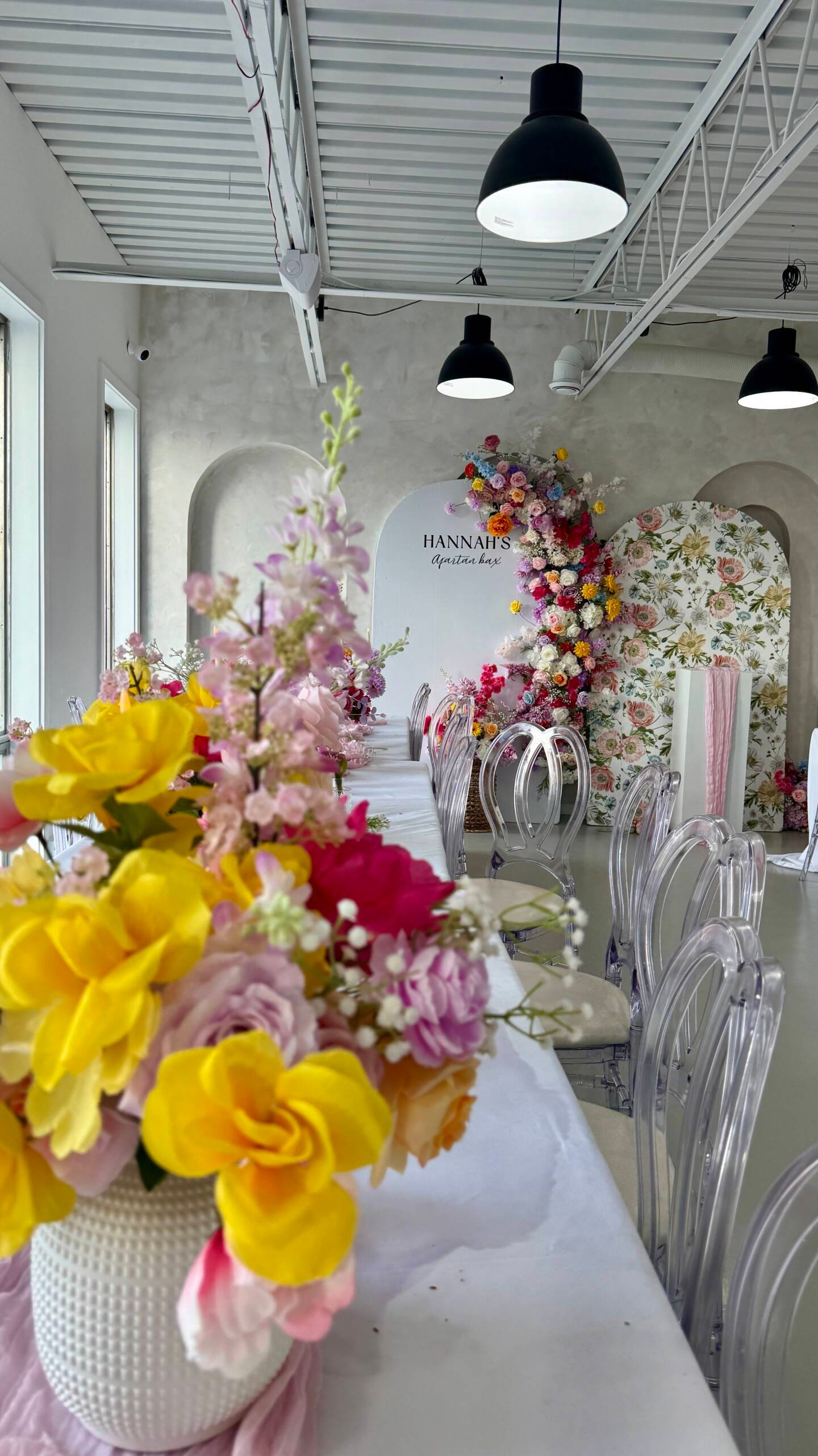 ($60 for centrepiece, $100 for large arrangement, $300 for ceiling hanging floral arrangement)